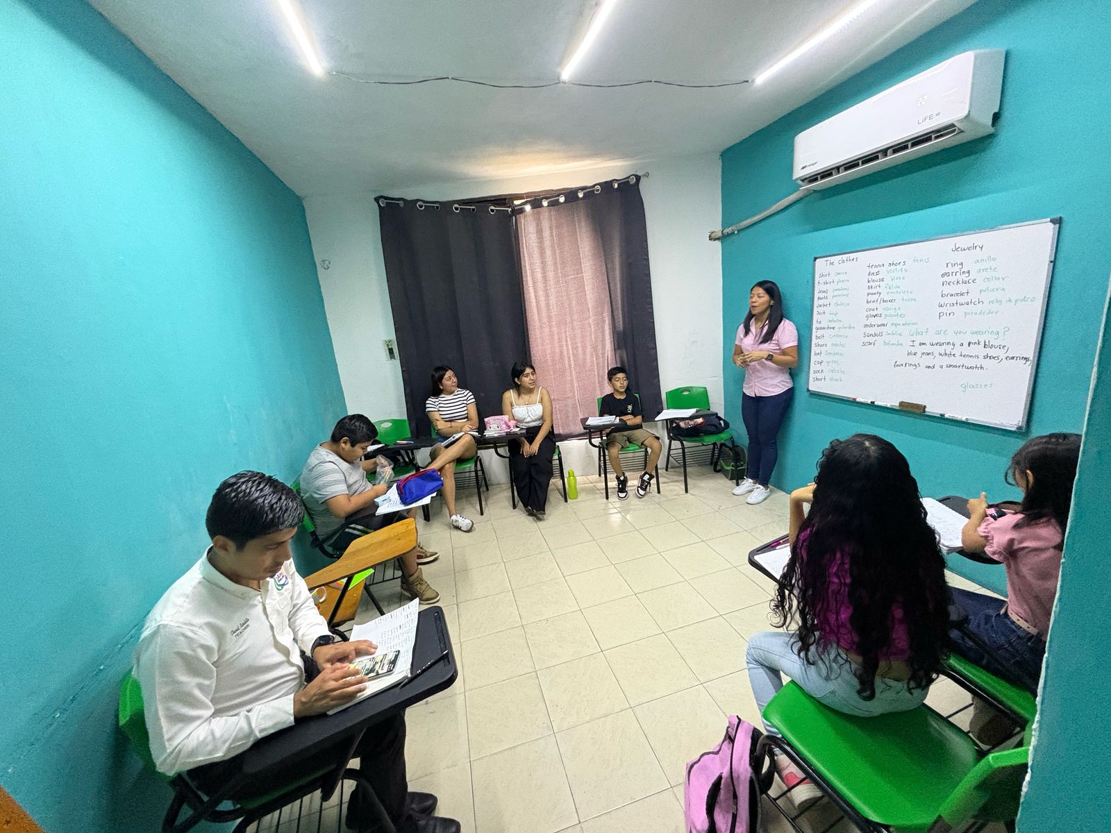 Nuestras clases son diferentes, porque usamos aprendizaje acelerado, te vas a divertir; Aprende más rápido, fácil y divertido. Son clases presenciales, 100% conversacionales, interactivas, dinámicas y lúdicas; Instalaciones climatizadas, cómodas y céntricas para facilidad de llegada de los alumnos, contamos con certificación.